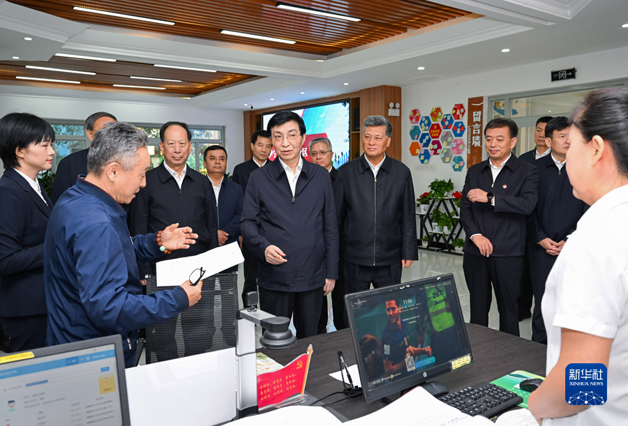 9月19日至21日,第九次全国对口支援新疆工作会议在新疆喀什召开。中共中央政治局常委、全国政协主席王沪宁出席并讲话。在新疆期间,王沪宁还到伊犁、喀什、克孜勒苏和兵团第四师等地调研,看望援疆干部和基层群众。这是9月19日王沪宁在伊宁解放路街道六星街社区了解便民服务和推进民族团结进步情况,就主题教育开展情况进行调研指导。新华社记者饶爱民摄