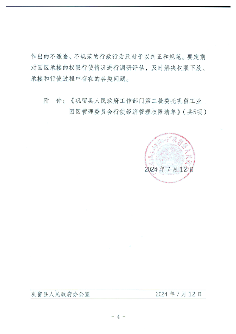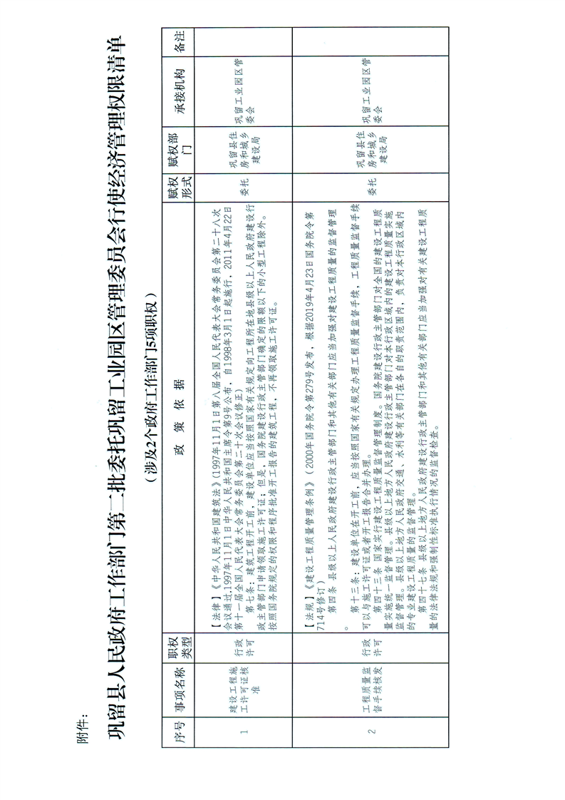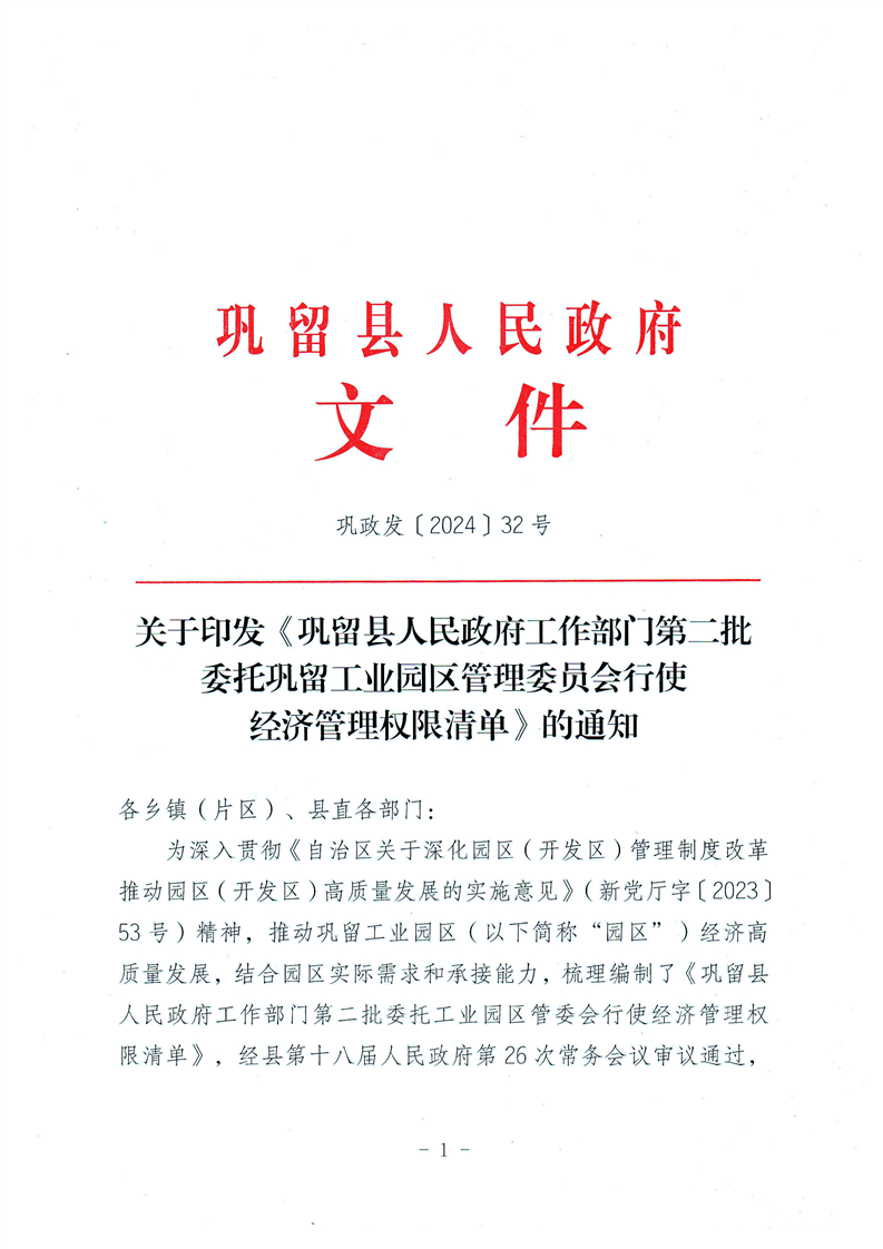 关于印发巩留县人民政府工作部门第二批委托巩留工业园区管理委员会行使经济管理权限清单的通知