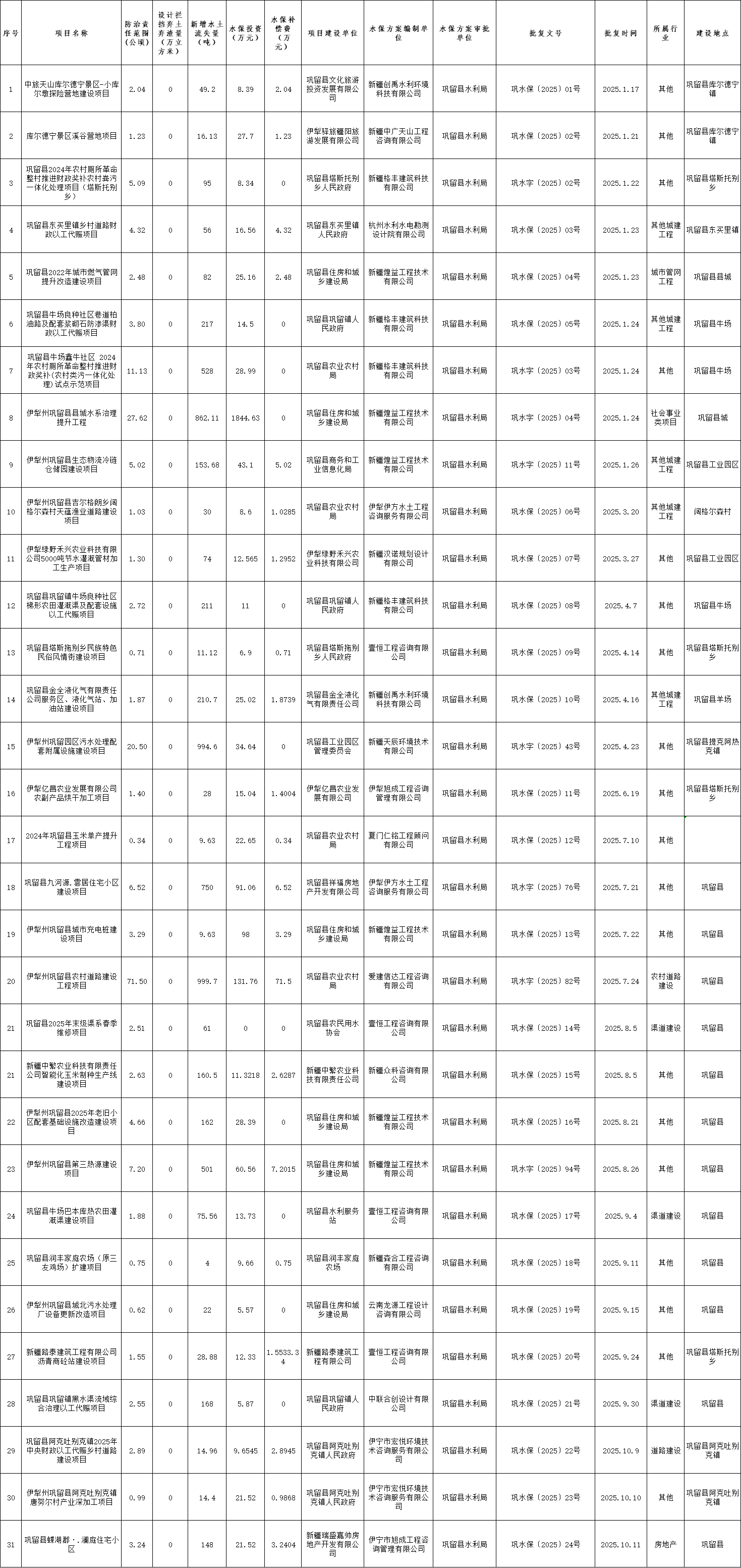 巩留县2025年1月-10月水土保持方案审批情况表(1-10)