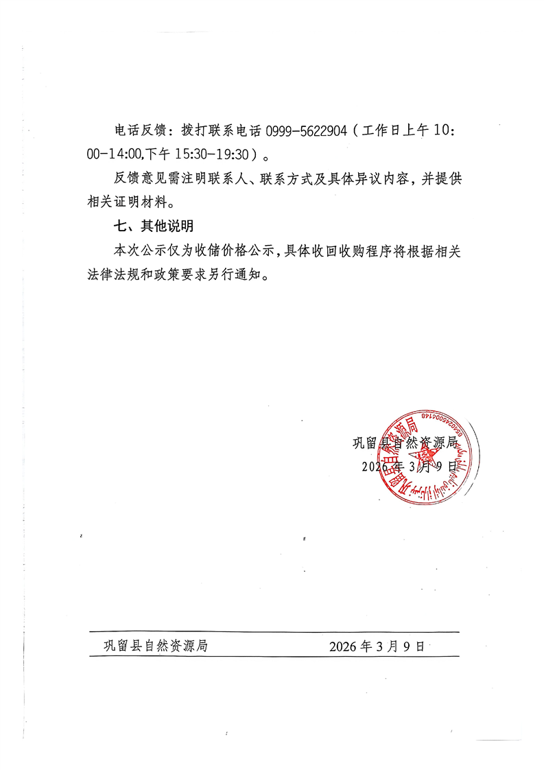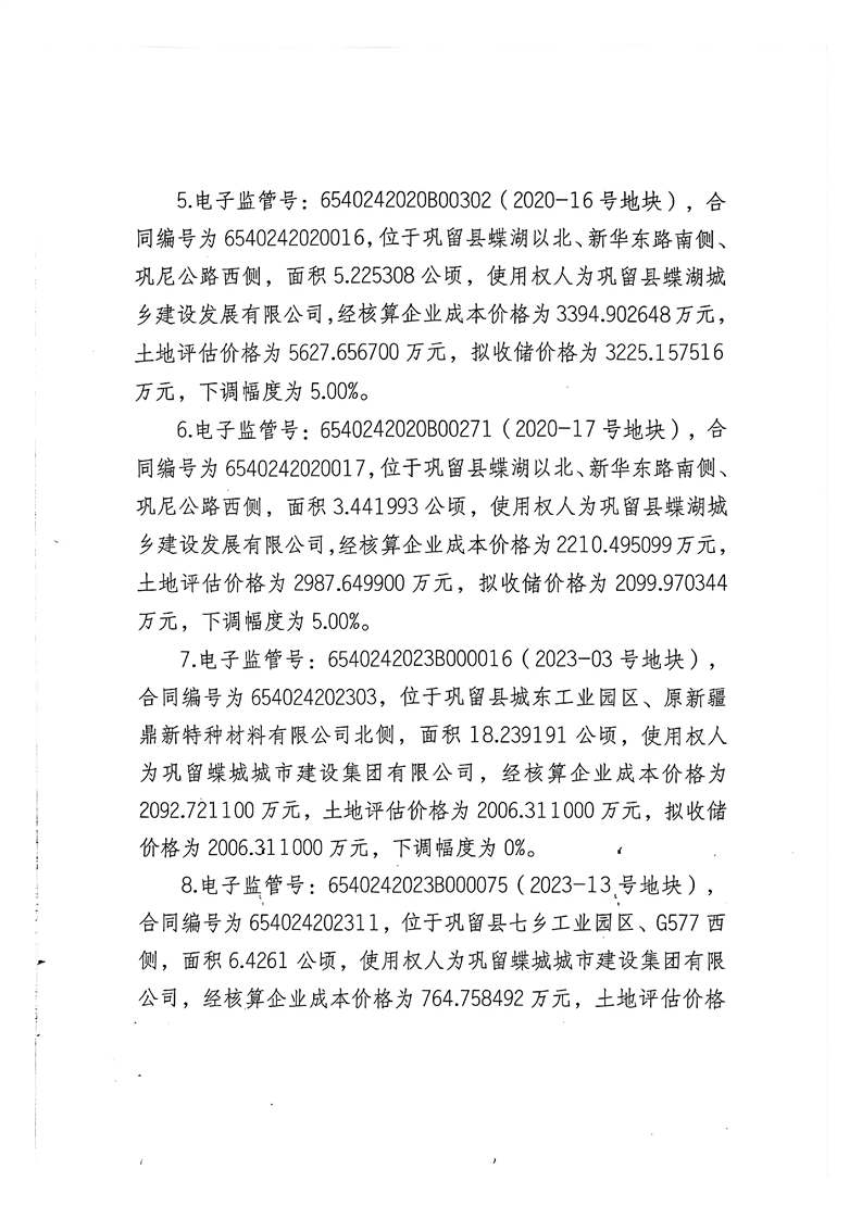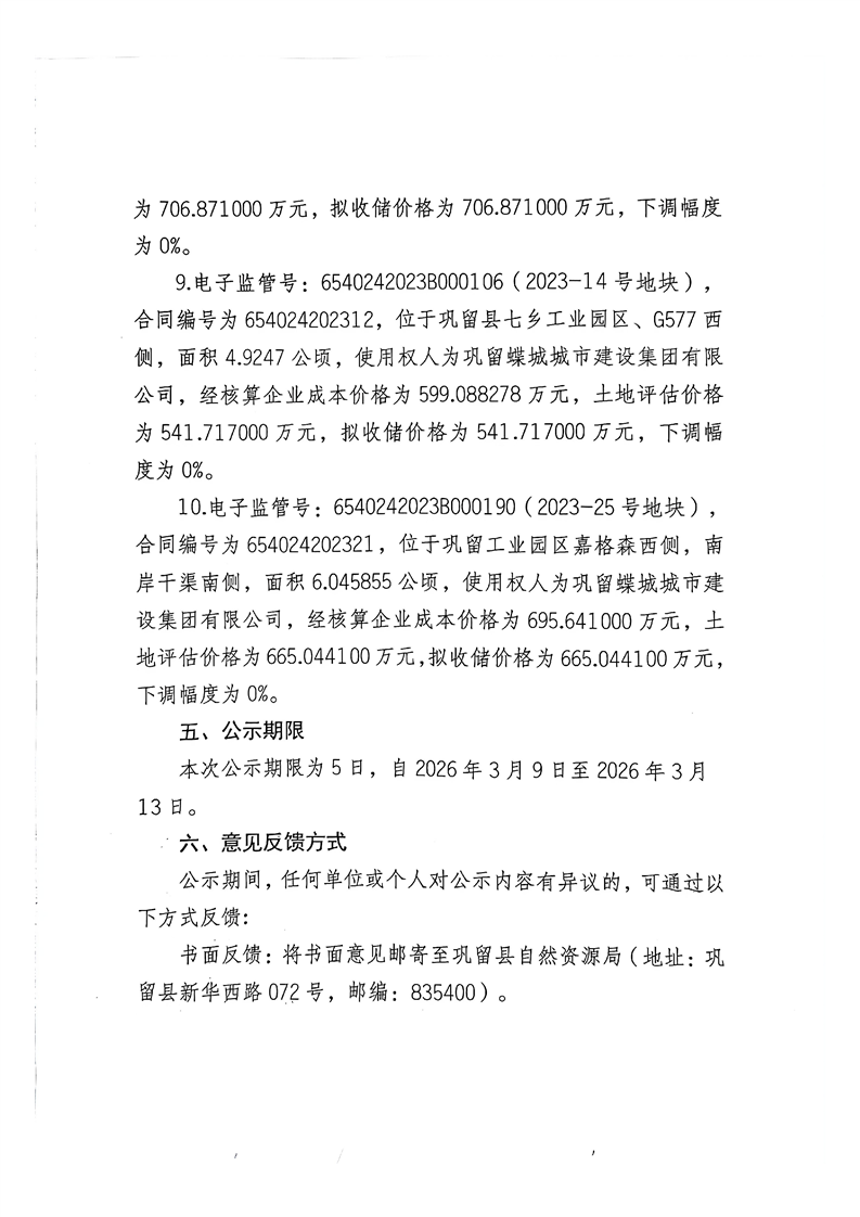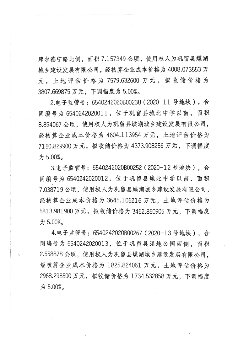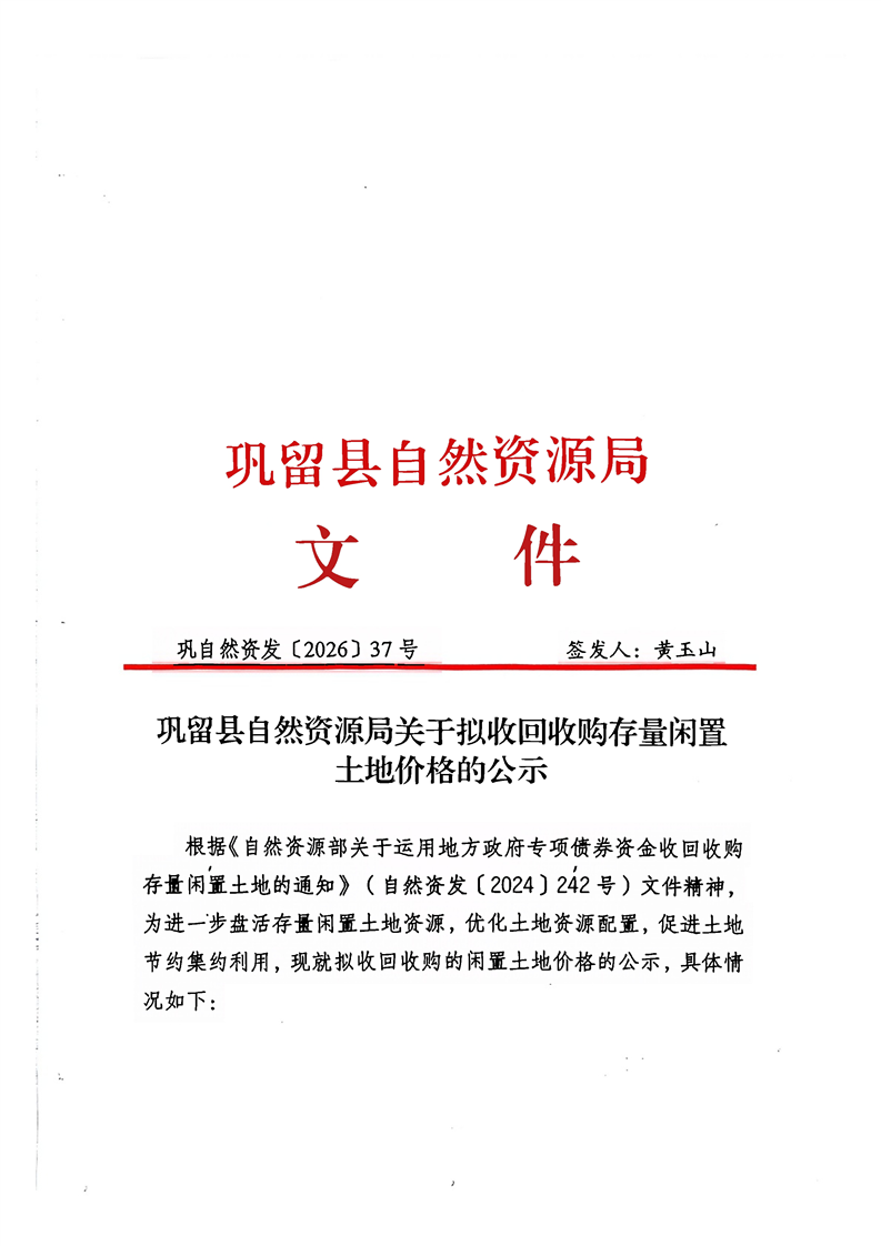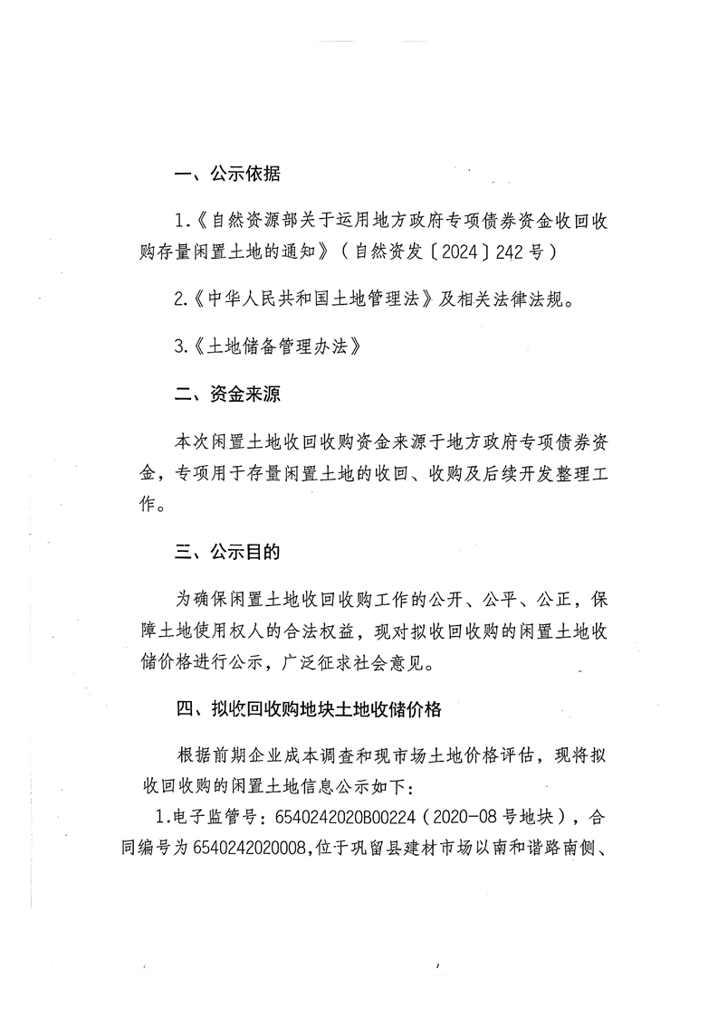 巩留县自然资源局关于拟收回收购存量闲置土地价格的公示