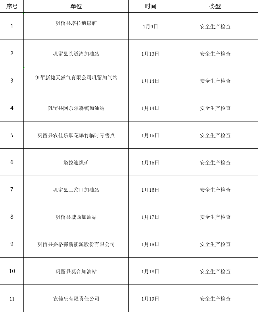 巩留县应急管理局2023年1月双随机、一公开公示情况