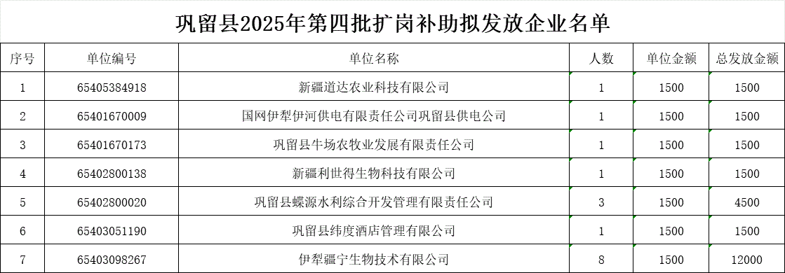 附:巩留县2025年第二批技能提升补贴拟发放公示