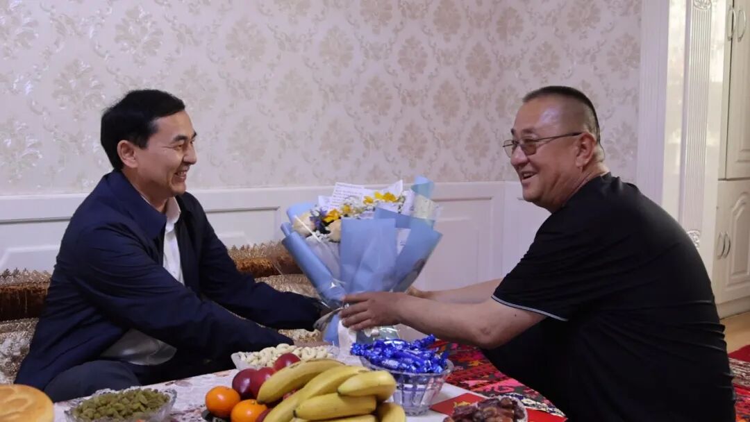 县委副书记、县长撒那提·赛提肯走访慰问了自治区先进工作者地力木拉提·努尔伙加和自治州劳动模范加米拉·托合塔森。