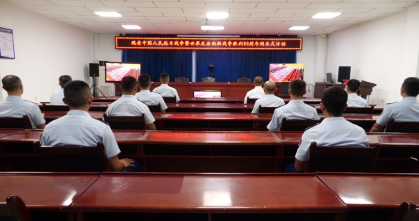 上午9点整,县领导在人民武装部与全体官兵、文职人员及职工共同收看纪念中国人民抗日战争暨世界反法西斯战争胜利80周年大会阅兵仪式。