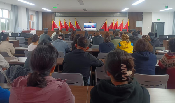 阿尕尔森镇组织全体机关干部及各村干部、人大代表,宗教人士,政协委员260余人集中收看中国人民抗日战争暨世界反法西斯战争胜利80周年阅兵仪式直播。