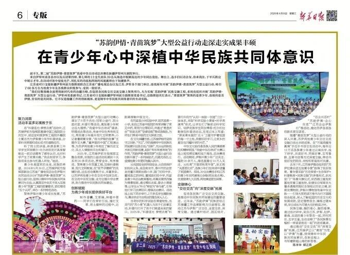 媒体聚焦 | 新华日报:“苏韵伊情·青苗筑梦”大型公益行动走深走实成果丰硕 在青少年心中深植中华民族共同体意识