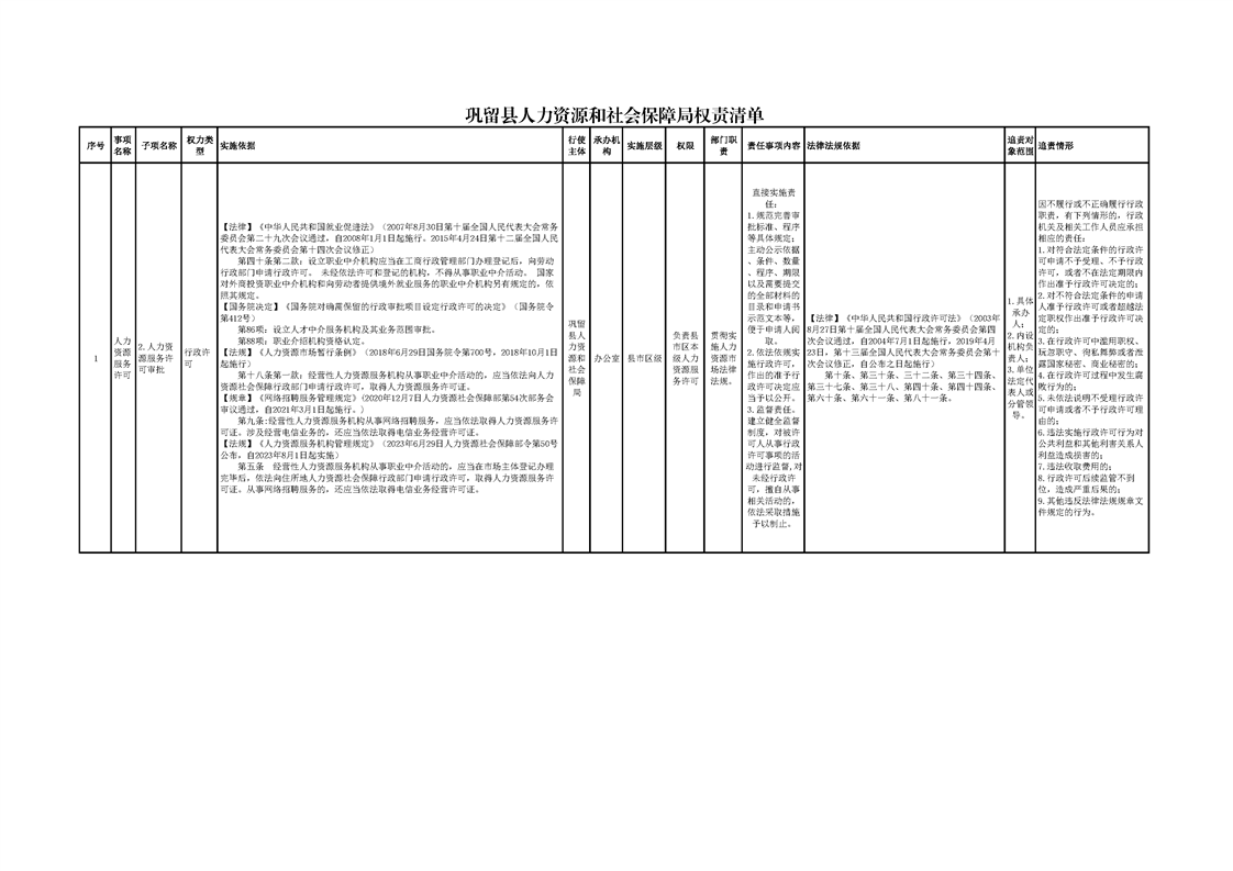 2025年巩留县人社局权责清单
