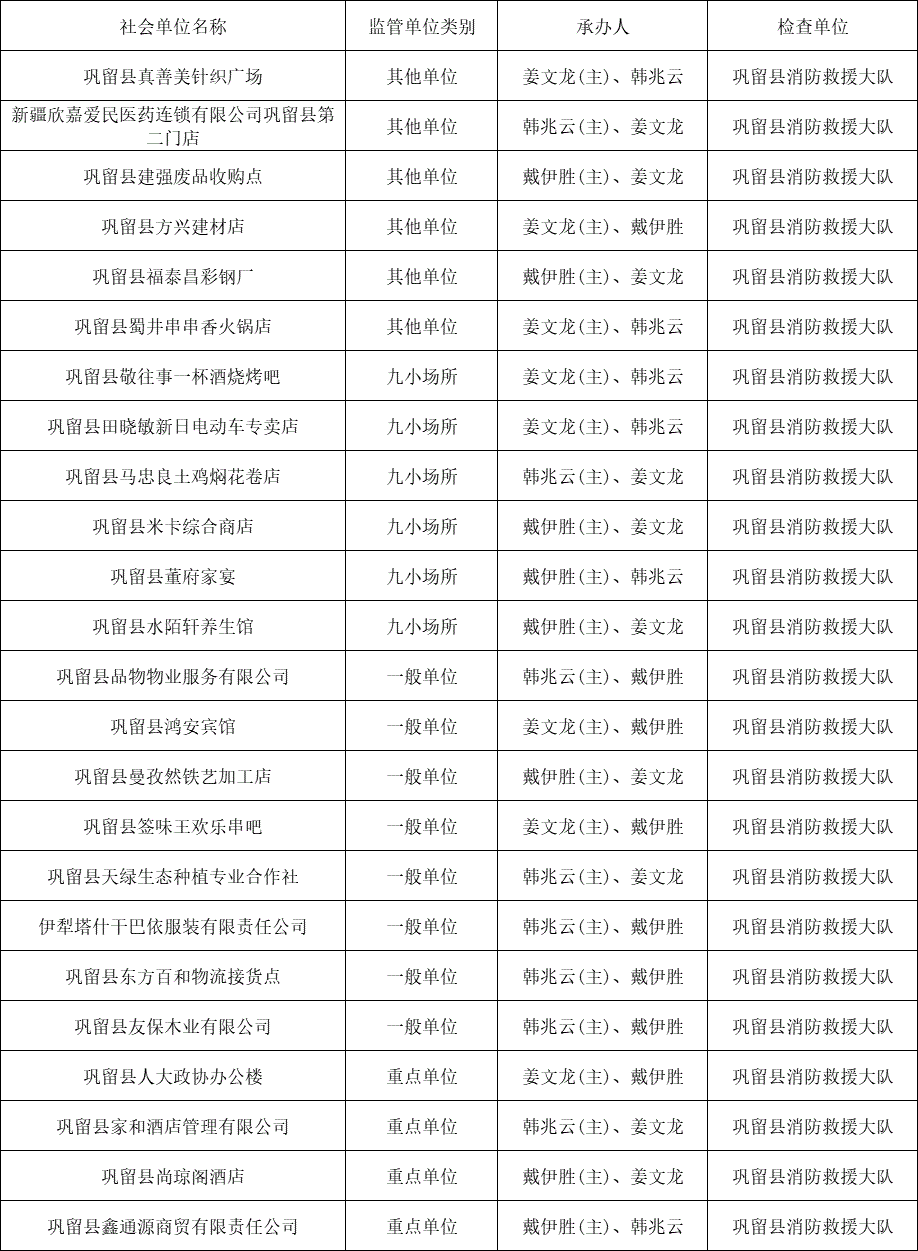 巩留县消防救援大队2026年1月双随机、一公开监督检查计划
