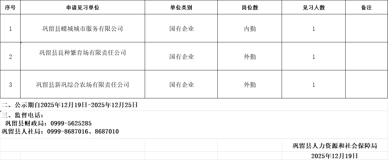 2025年申请就业见习单位公示