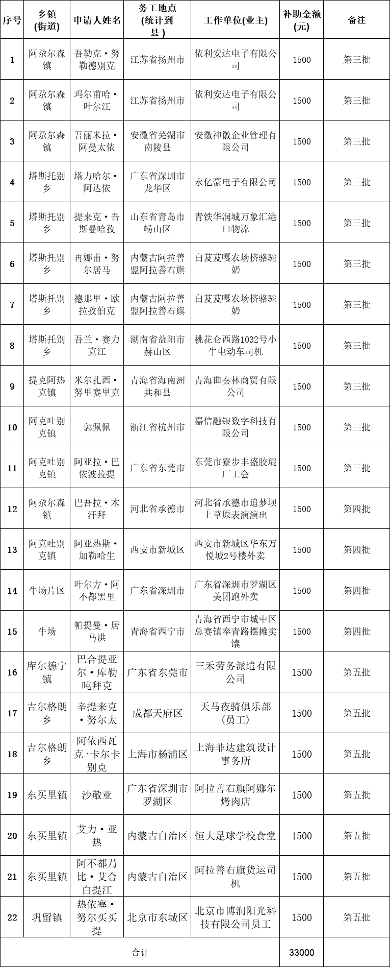 巩留县2025年脱贫人口及监测对象(疆外)外出务工一次性交通补助申请发放表(第三、四批、五批)