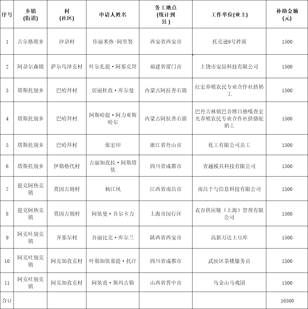 2025年巩留县脱贫人口及监测对象(疆外)外出务工一次性交通补助申请发放表(第六批)
