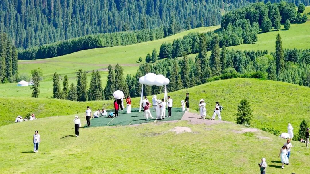 6月10日,巩留县恰西景区,游客漫步在高山草甸间,欣赏着如画美景,品尝着特色美食,尽情享受惬意的假期。进入6月,恰西景区以其独特的自然风光和丰富的生态资源,吸引了不少疆内外游客前来观光旅游。古尔邦节期间,景区内游客如织,随处可见游客们在景区摊位前品尝抓饭、大盘鸡、手抓肉等特色美食。为给游客提供更好的旅游体验,恰西景区提前开放大平台9公里自驾环线,临时开通恰塔环线燕子桥至瞭望塔自驾线路,同时,免费开放露营地帐篷与小广场,为游客提供亲近自然、放松休憩的场所。