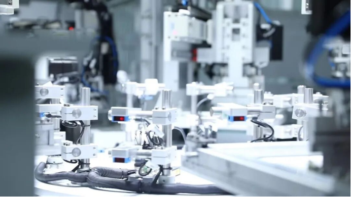 新疆永晶新能源科技有限公司氢能源项目电气工程师孟庆江:“目前,整条电堆生产线已全部调试完毕,现有13个工位均运行正常。生产线配备机械臂、AGV小车等先进设备,日常运转稳定有序。”